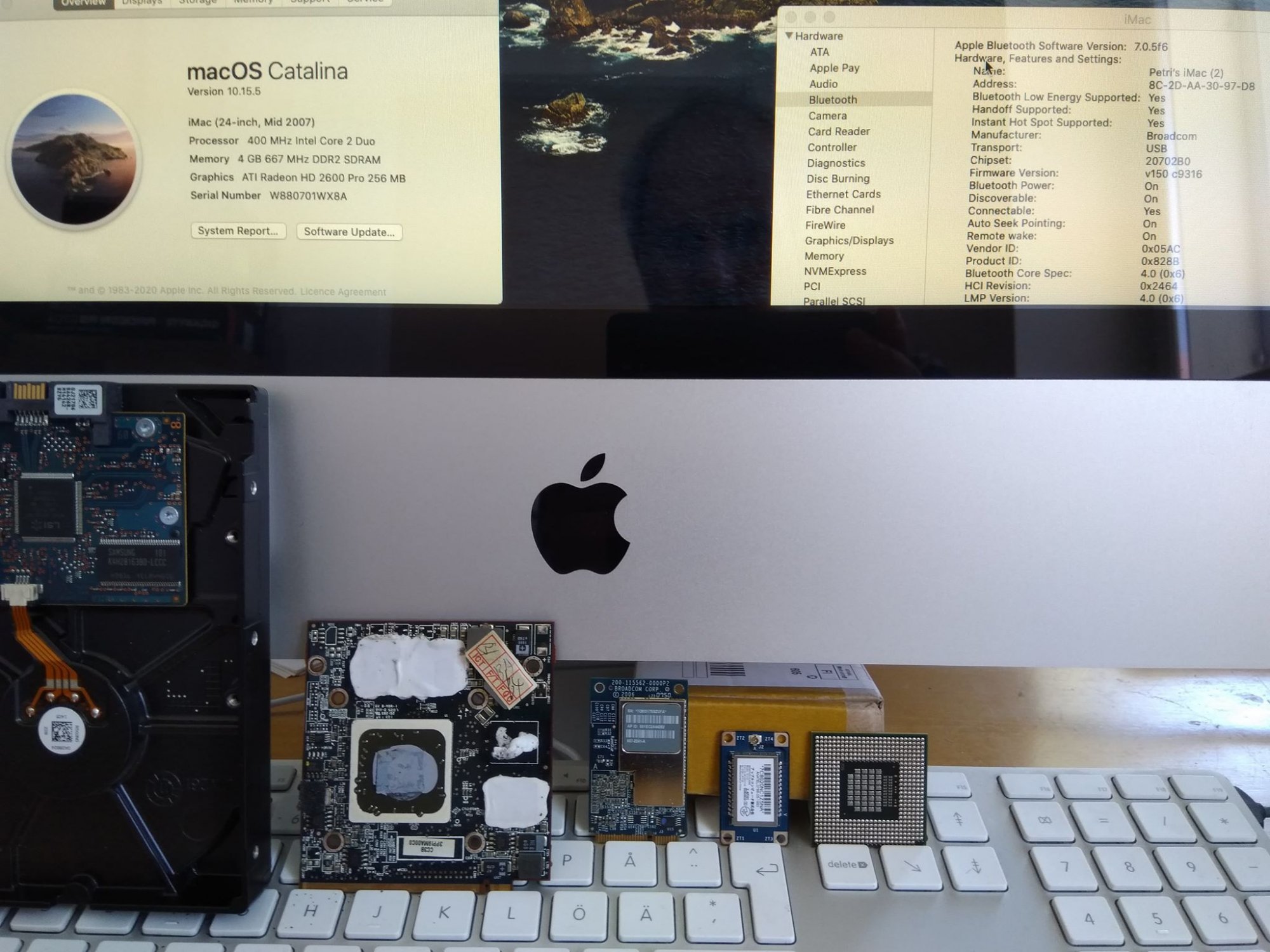 I had ordered a Core 2 Duo T9300 CPU to enable the Mac to run Catalina. I used some old Arctic Silver 3 on the CPU and the GPU. For the GPU ram I reused the white silicon paste. The GPU on the 24 inch IMac had been running much hotter than in the 20 inch iMac, deteriorating the black rubber foam and leaving sandy black dust inside the Mac.