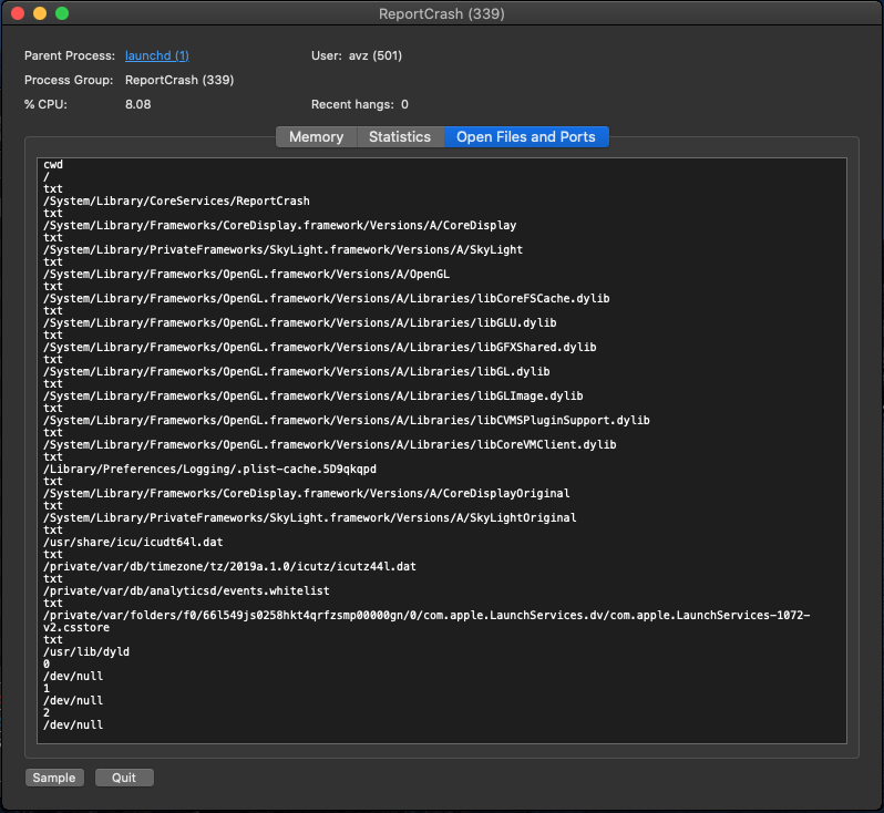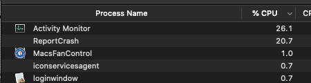 check your console log to see what's crashing. it may reveal some helpful info...I think this might be the reason for Catalina to run hotter than Mojave. ReportCrash seems to continuously eat into CPU cycles. I am wondering if something can be done about it.
