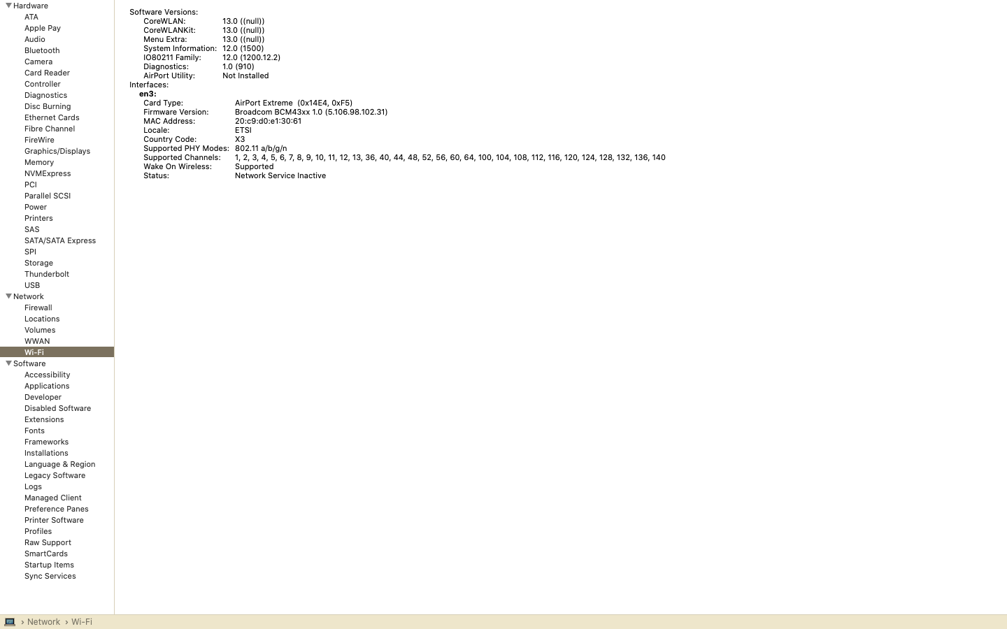 Hello K two, The original card is bad as it doesn't show up as installed in System Report. I started having the same issue on the original before it went south. The new "BT 4.0" card works when I delete wiFi and then reboot to add back WiFi but then "turns off" unable to turn back on. Could it be a firmware issue? It was noted by Finbarr Dnaipe that the latestest firmware (with High Sierra) is Boot ROM Version: 84.0.0.0.0. I have Boot ROM Version: 82.0.0.0.0. I believe the only way to get the latest firmware for MBP 8,2 is to format SSD, install High Sierra and subsequently have the firmware in an update then install/restore back to Catalina. I have done the High Sierra redo route a few weeks ago but my firmware remained at "82.00; I didn't see any update subsequent to High Sierra install Any suggestions? Thanks. BTW to respond to your post, I did remove/add WiFI in network preferences, reboot to regain WiFI and have had it on for the last 20'. The disconnect occurs at random times; goes off anywhere between 5'-120'. This occurred/occurs with old and new WiFI card. Could be a motherboard related issue? After all who knows although everything was fine until 2 months ago. The motherboard was replaced by Apple in 2016 under their dGPU-gate recall (to have their motherboard fail after just 6 months again)