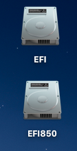 Then rename the mounted EFI partitions using the Finder so that the name of the volume describes what disk each belongs to. Perhaps name the EFI on the 1TB disk "EFI850" and the EFI volume on the 2TB disk "EFI870"