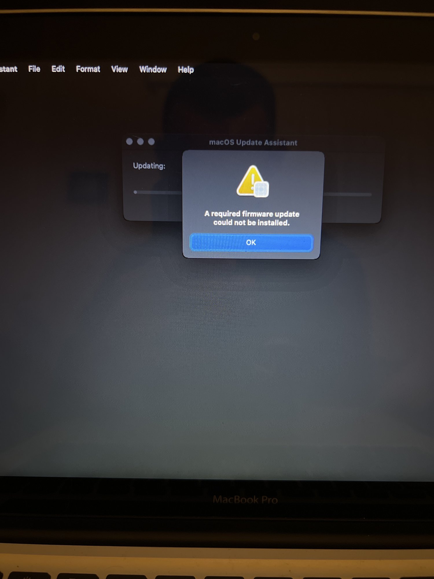I have a 2012 MacBook pro on catalina os, I’m trying to update using OCLP, but when I install the os I got the messsage error “the firmware update cannot be installed” what’s the problem ??
