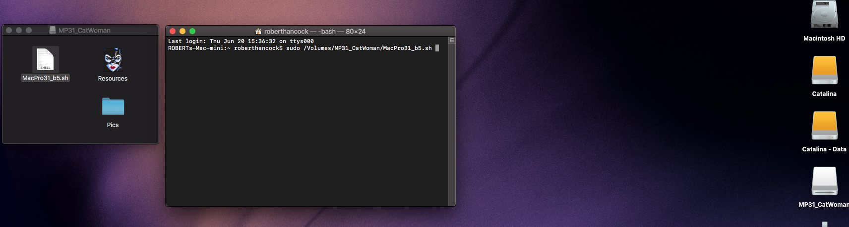 ROBERTs-Mac-mini:~ roberthancock$ sudo /Volumes/MP31_CatWoman/MacPro31_b5.sh