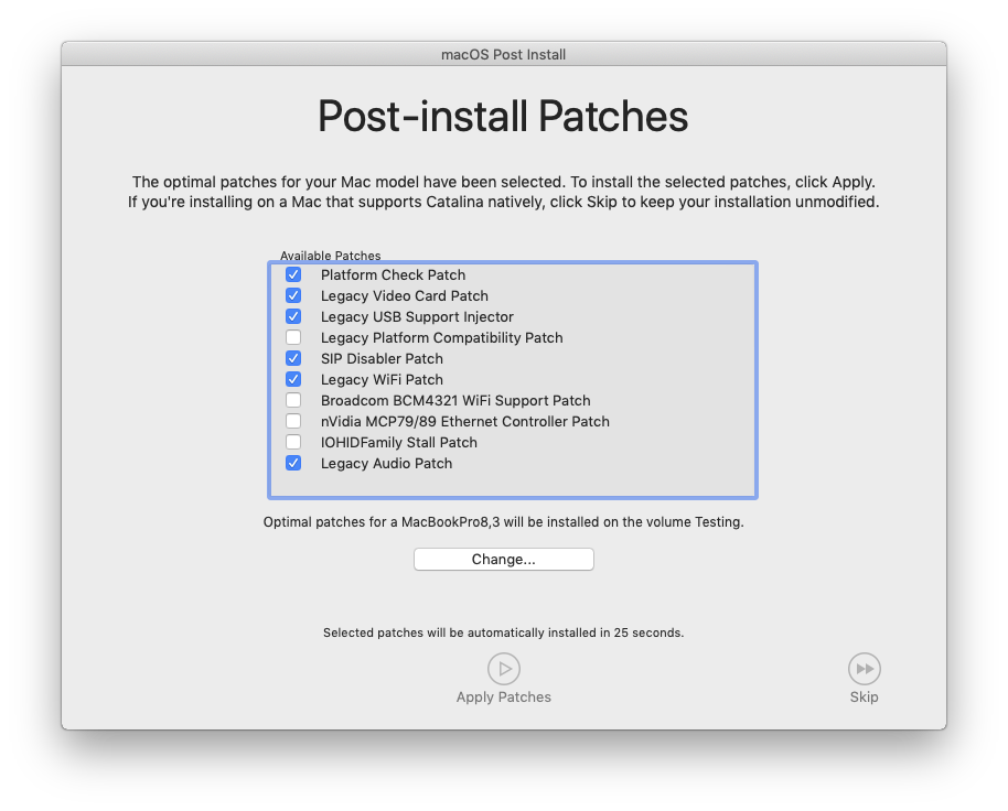 is there , or will there be a patch to make pci m2 ssd drives to be recognised as internal.Just finished another update to Catalina Patcher, which now includes an all-new, fully-automated post-install tool! While it can still be applied manually just like older post-install tool versions, this new one will now be applied automatically for you once the Catalina installation completes, with all the optimal patches for your machine pre-determined.