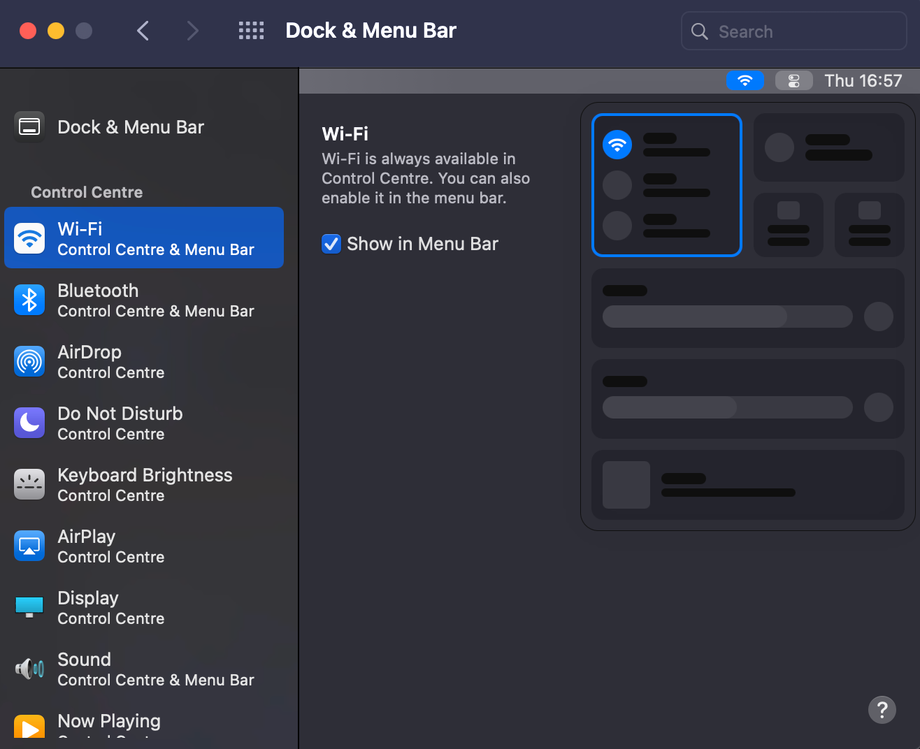 The 'Dock and Menu Bar' settings has two sections - the first section lists the options that are always there in CC. You may choose to show/hide each one of them from the menu bar. The second section shows few more, which you can show/hide from CC and/or menu bar.