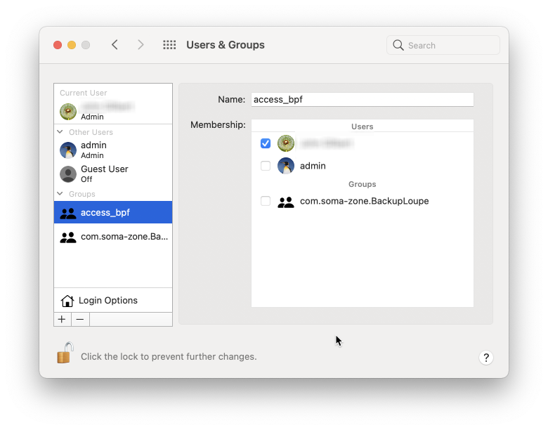 The two groups I've added (for Wireshark and Unbound) don't appear in System Preferences.It shows all the users and groups which are an addition to those in clean install. On my Mac it shows two groups, one related to Wireshark and other to Backup Loupe - both apps added after installation.