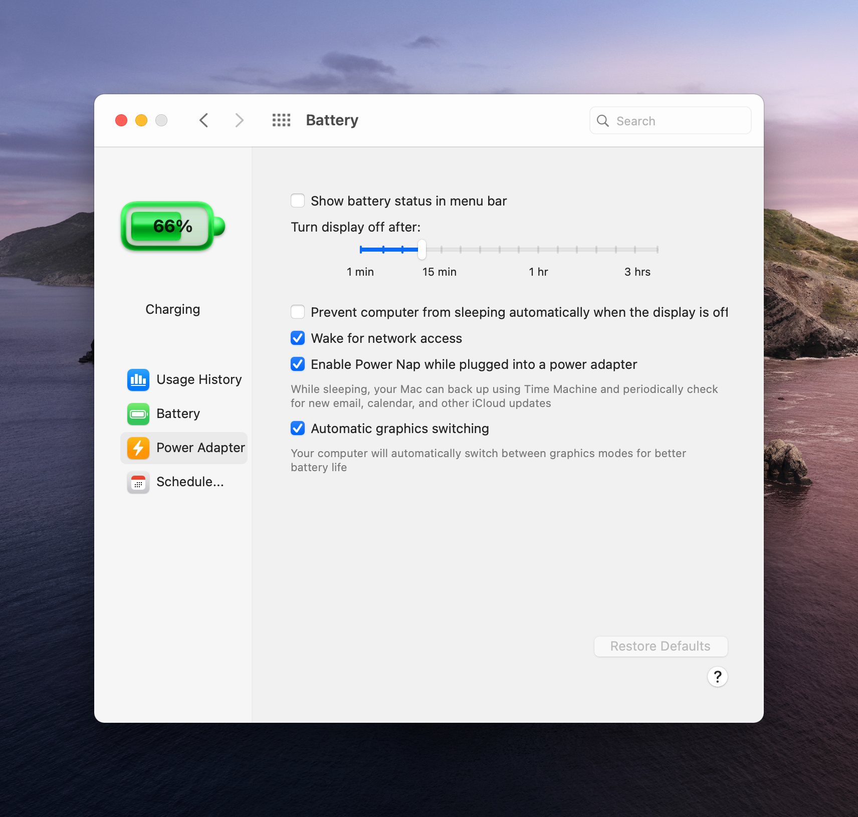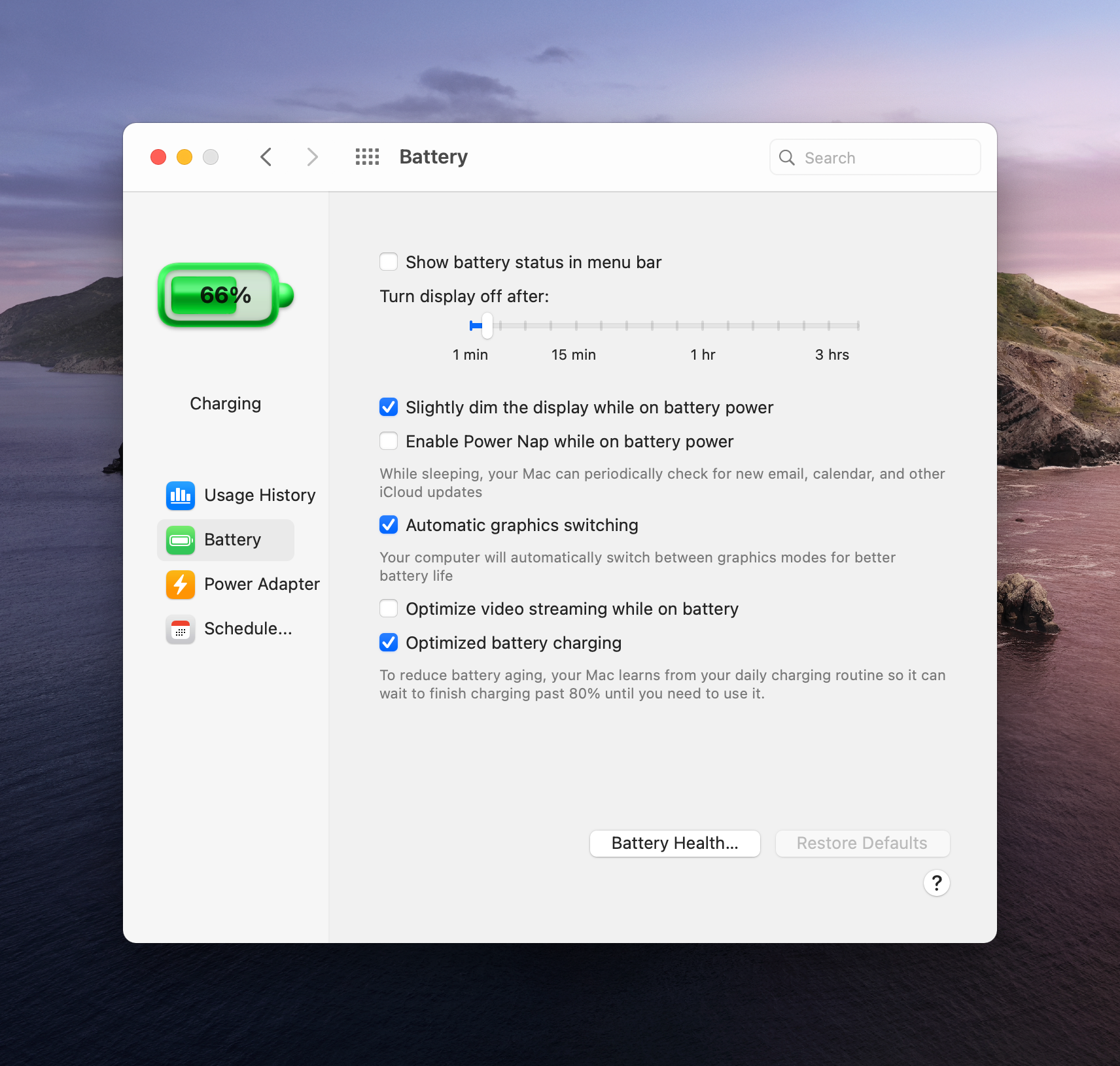 There is a new Battery system preferences pane and here are all the options that are supported on current MacBooks that can run Big Sur: