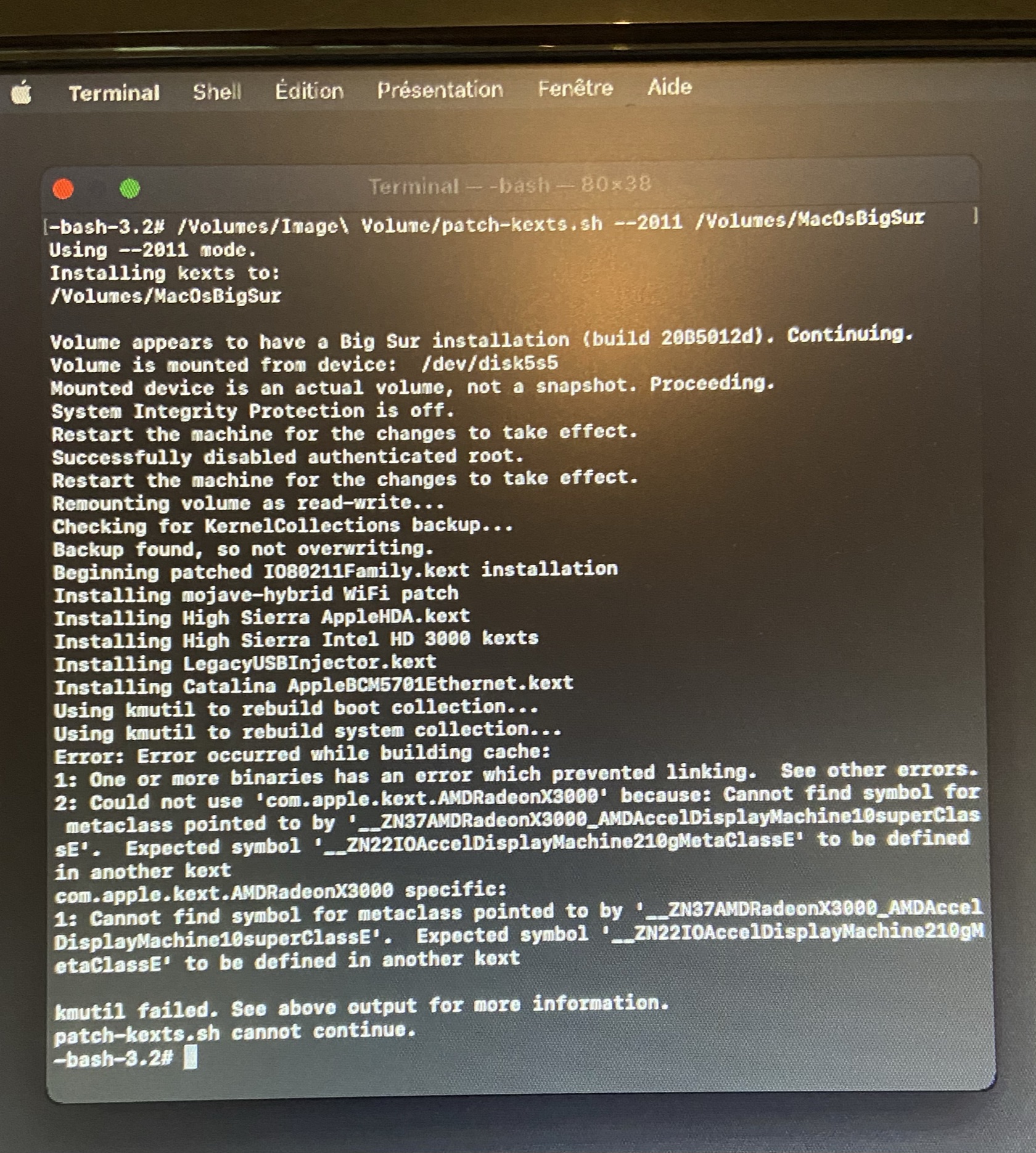 When applying patch-kexts.sh —2011 got these errors. Both from the booted installation or from the Usb stick. What should I do?