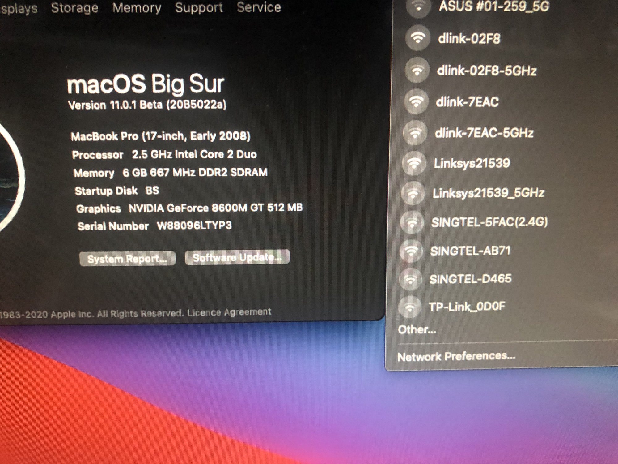 After weeks of trying and days with the help of @jackluke going back and forth and most importantly patience my Macbook Pro 17” early 2008 is running Big Sur. Wifi and sound works. Will update more later. Super excited!