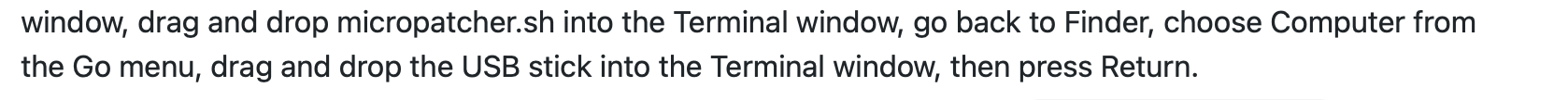 10. Unzip the downloaded micropatcher, drag the micropatcher.sh file onto the Terminal window, then enter.