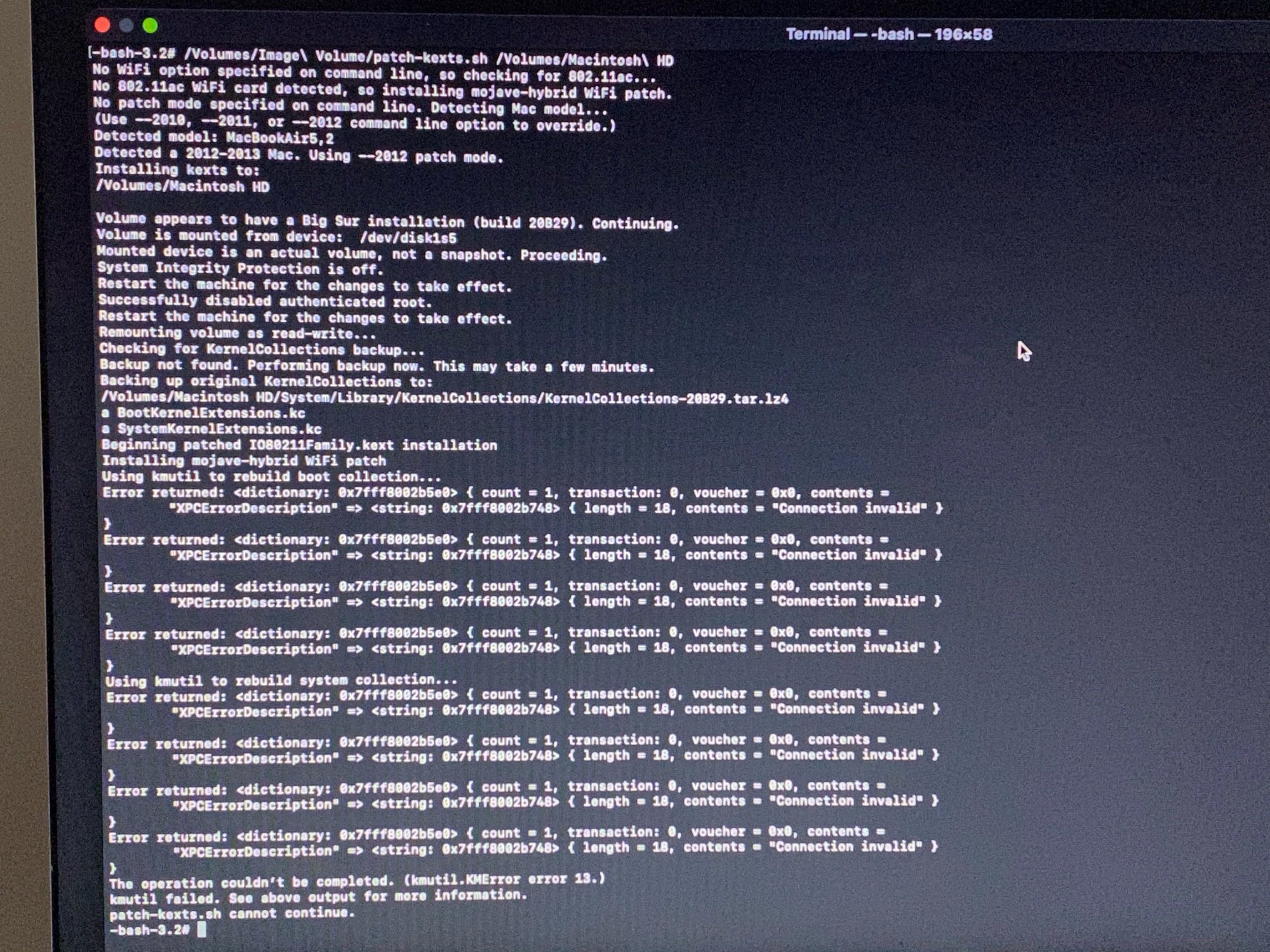 21c. Input "/Volume/Image\ Volumes/patch-kexts.sh /Volumes/***" and hit enter, when finished enter "reboot", both without the quotes.
