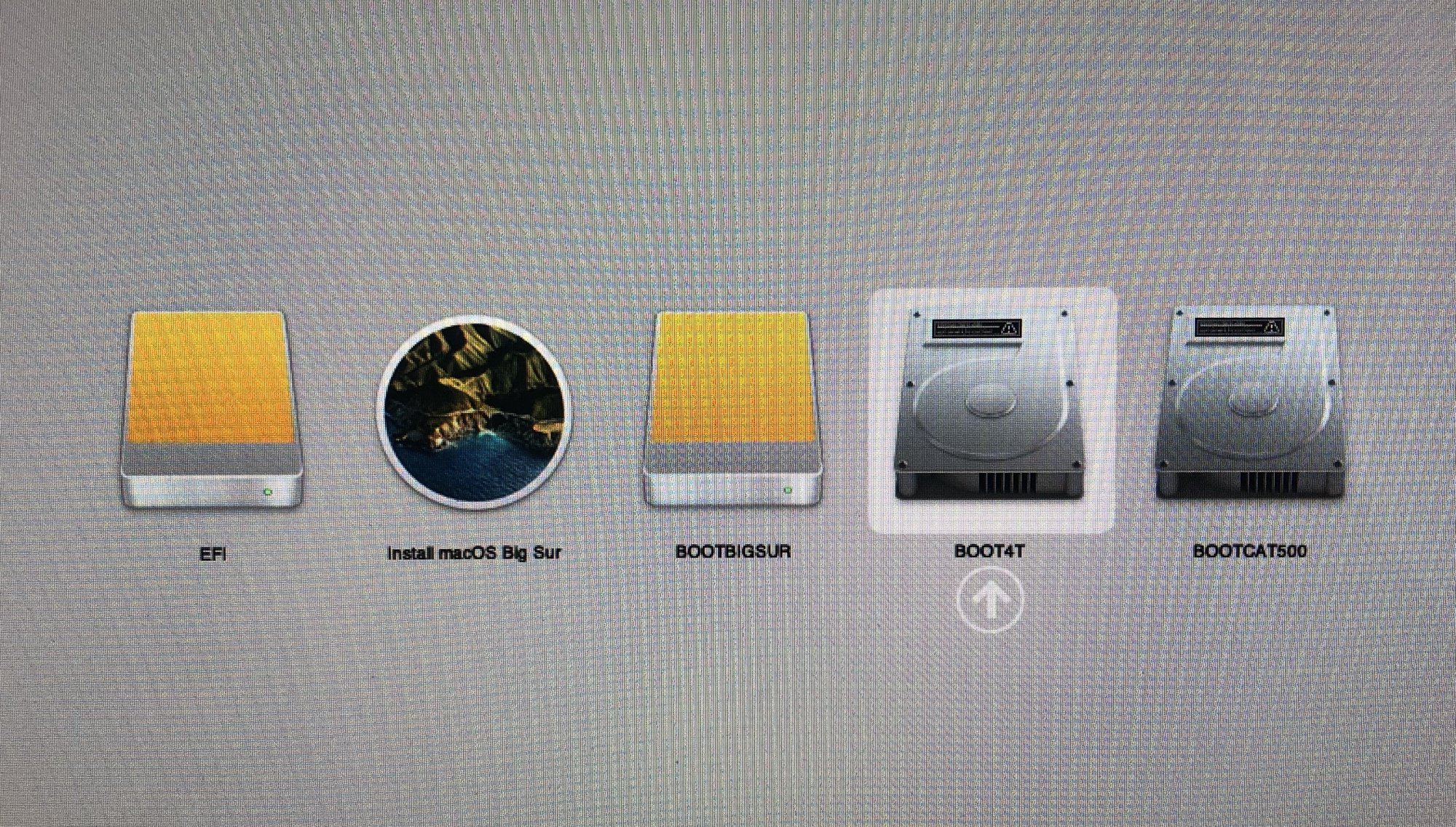 4) Reboot on the key, you should see your usual internal drives and 2 other choices: "EFI" and "install macOS Big Sur"