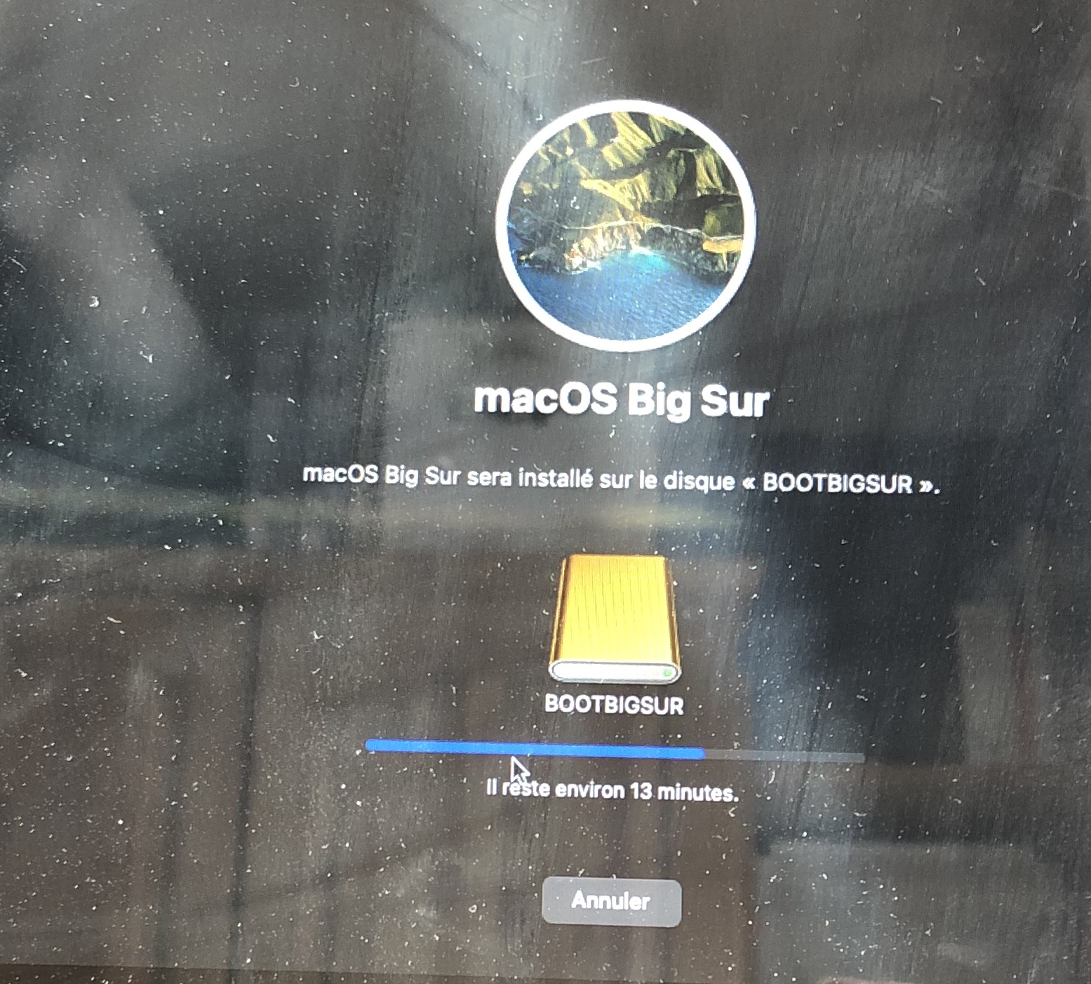 6) Restart and choose this time "install macOS Big Sur", you must then have the classic screen of an installation: