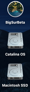 Just for clarity, SSD in my computer has two partitions; one partition holds Mojave and Catalina systems (in two separate containers, titled Macintosh SSD and Catalina OS); the second partition holds container for BigSurBeta.