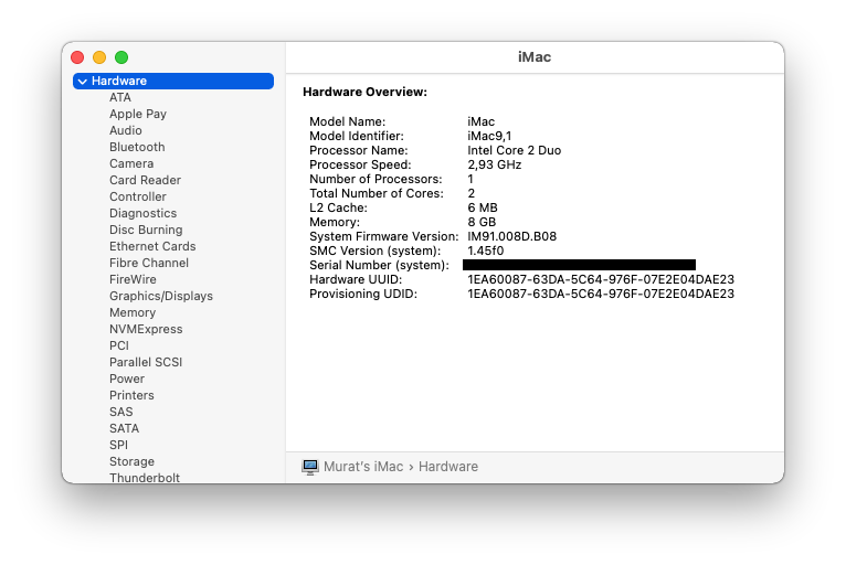 CH341A programmer with SOP8 clip to flash EFI chip MX25L6406E with modified EFI file from clean one with my own serieal number, hash code and checksum valid.