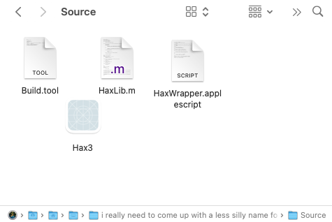One more step I had to perform to achieve full functionality: drug Hax3 application from main folder (one with long name) into the Source folder (located in same “long name” folder); the Hax3 app would otherwise not launch via the script, at least not on my machine.