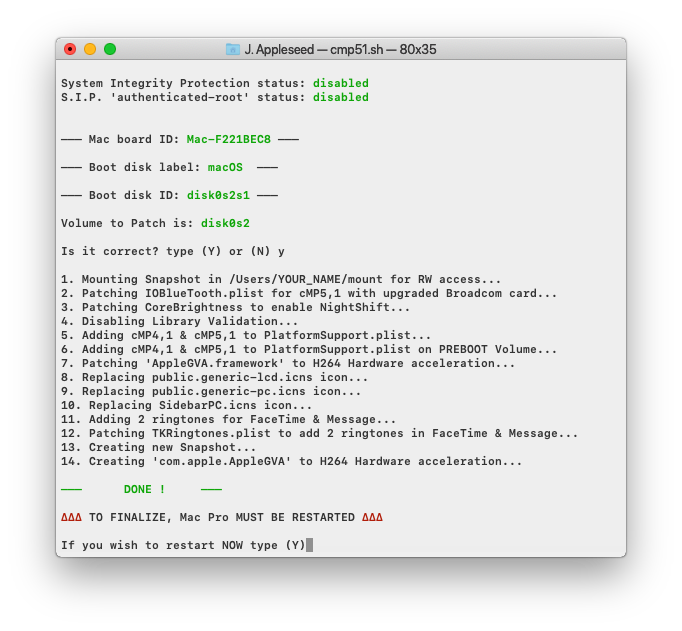To add cMP5,1 board ID with PlistBuddy in "PlatformSupport.plist" on PREBOOT Volume