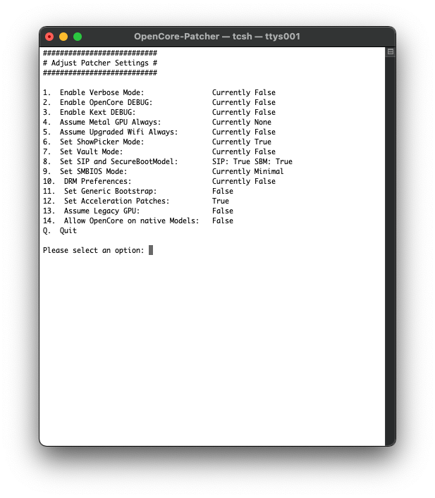 Since my rMBP mid-2012 has an upgraded wifi card, I also found it a bit confusing regarding how these options are set. But I did find that if I selected option 5, the explanation for how and why to change it or leave it alone was clear; in my case "false" is the correct setting since the software detected my upgraded card and thus didn't need assume I had the card, in other words it was already checked and dealt with.Just updated OC using OCLP 0.1.2 and I was slightly confused by the new default settings. Why are the Acceleration Patches enabled by default on a MacPro5,1 with a Metal GPU (5700 XT)? I turned them off since they shouldn't apply to my machine and I'm running Big Sur, but I'm wondering if this might trip up other people if they don't modify the defaults.