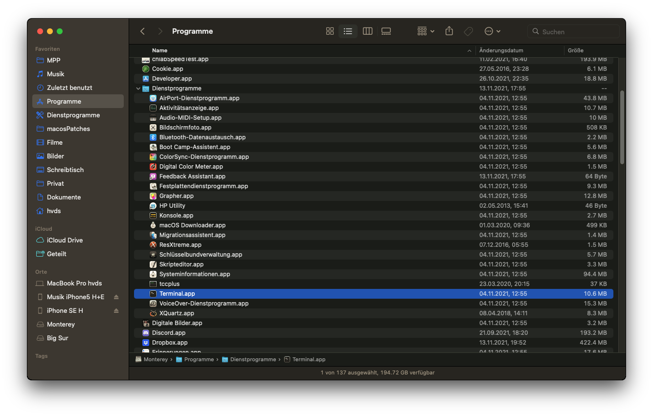 The Terminal app is found in Utilities of Applications like in 3rd screenshot.