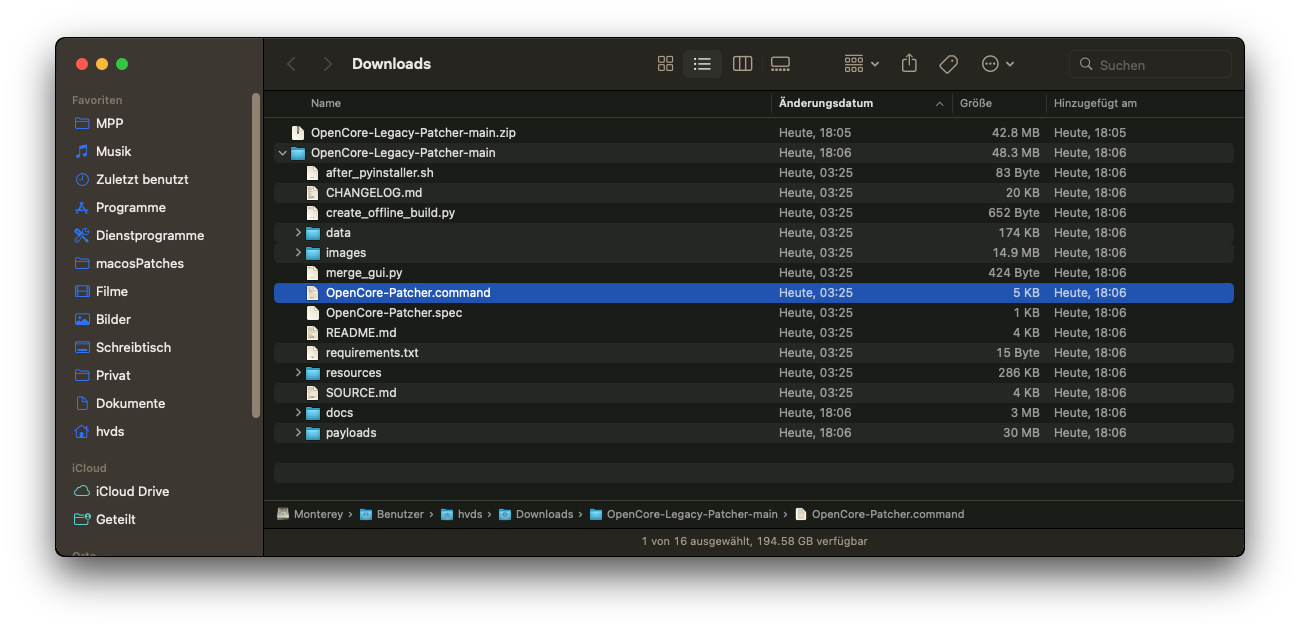 https://github.com/dortania/OpenCore-Legacy-Patcher like in the 1st screenshot, click the green button then click download zip. Double-click the downloaded zip file to get the OpenCore-Legacy-Patcher-main folder. In there is the OpenCore-Patcher.command (2nd screenshot). Double click this, it will open in Terminal (maybe asks if you really want to open it).