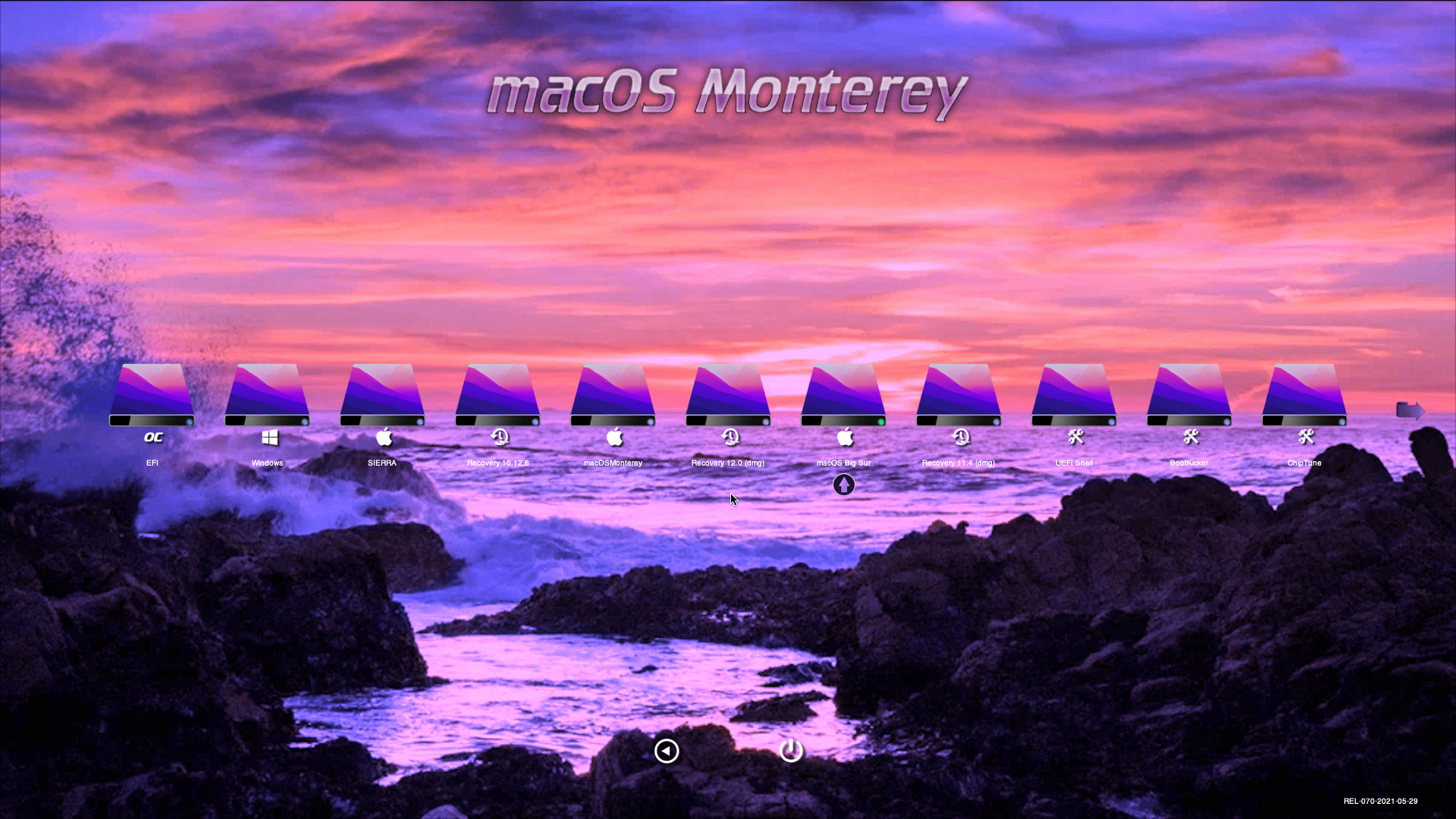 Could not boot the installed Monterey quite to the login/setup screen. Instead showing the spinning wheel for some seconds, then black screen for a few seconds, repeatedly. It also showed the trackpad pointer which could even be moved during the black screen phases.