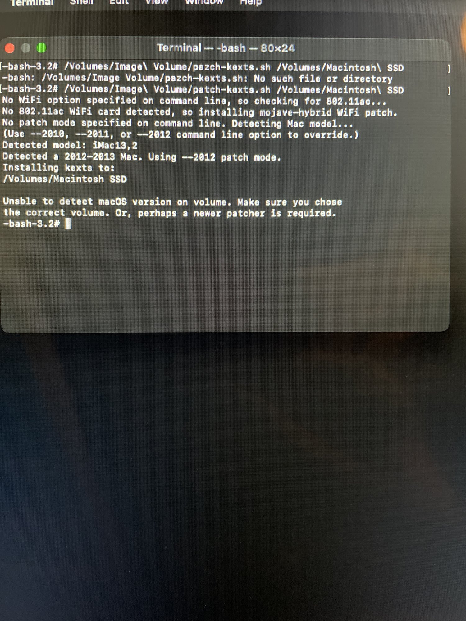 The install was fine, but when I want to patch the Wi-Fi kext, it gives me an error that unable to detect macOS version. How can I fix this?