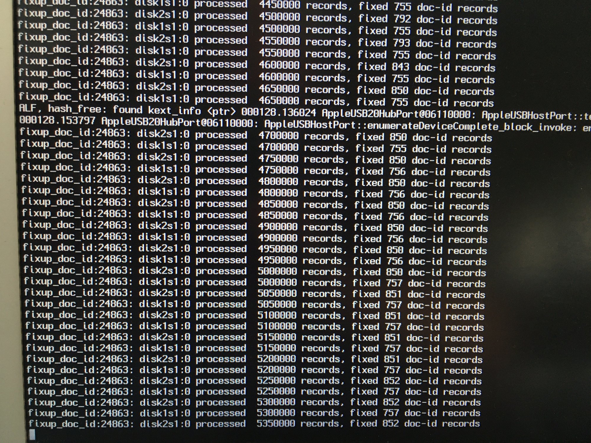 When setting verbose mode in OCLP, I first saw what is in attachment 1 for about a minute, then what is in attachment 2 without end; don't know if this is related to the intermitting spinning wheel seen in non-verbose mode.
