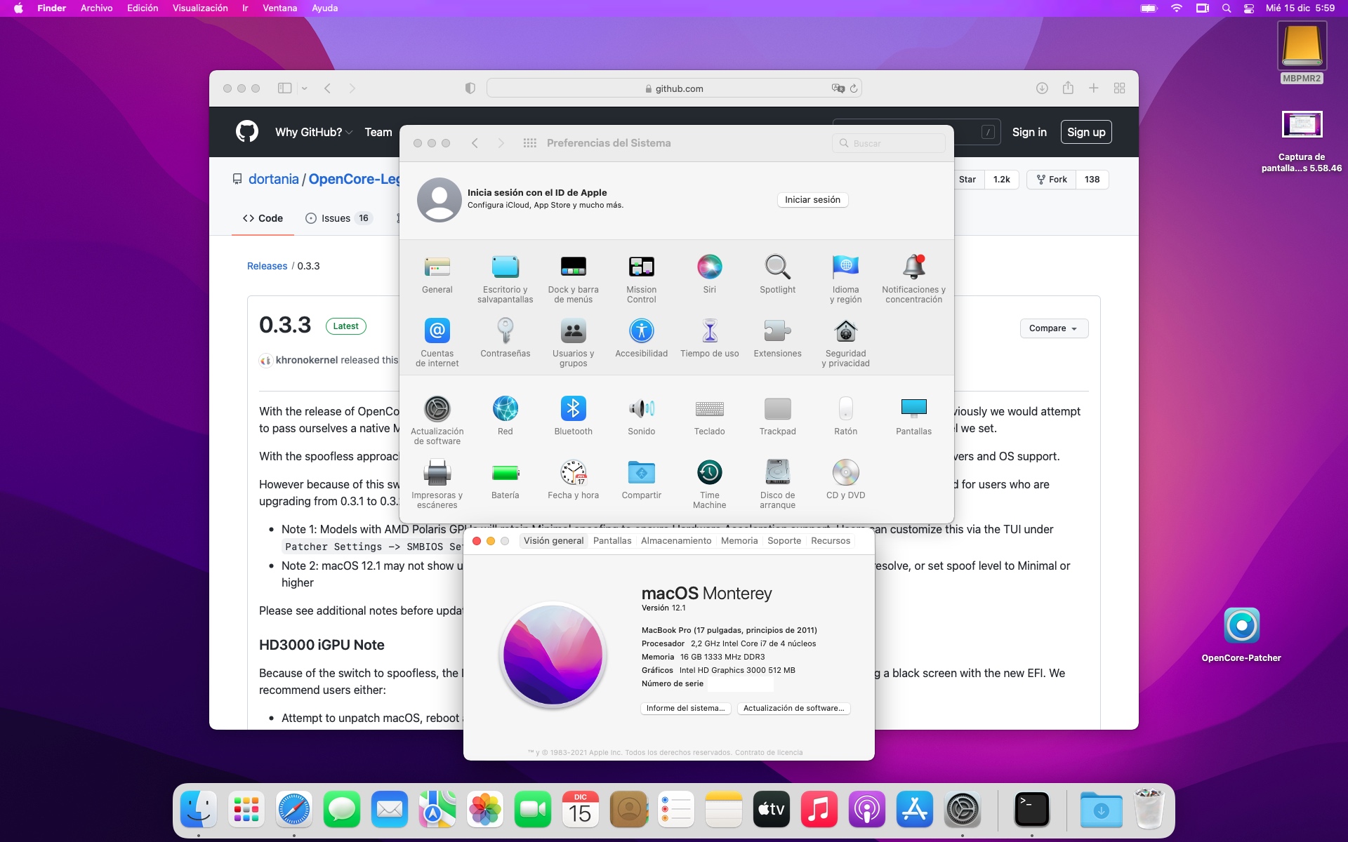 MBP4,1 17-inch (Early 2008) successfully upgraded to Monterey 12.1 via OCLP 0.3.1 OTA via Big Sur 11.6.2