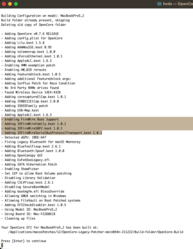 Then 1. Build OpenCore. The build protocol should mention FireWire.