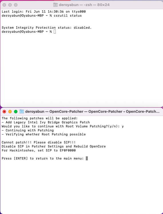 SIP deactivated but still receive "cannot patch!!! please disable SIP!!!