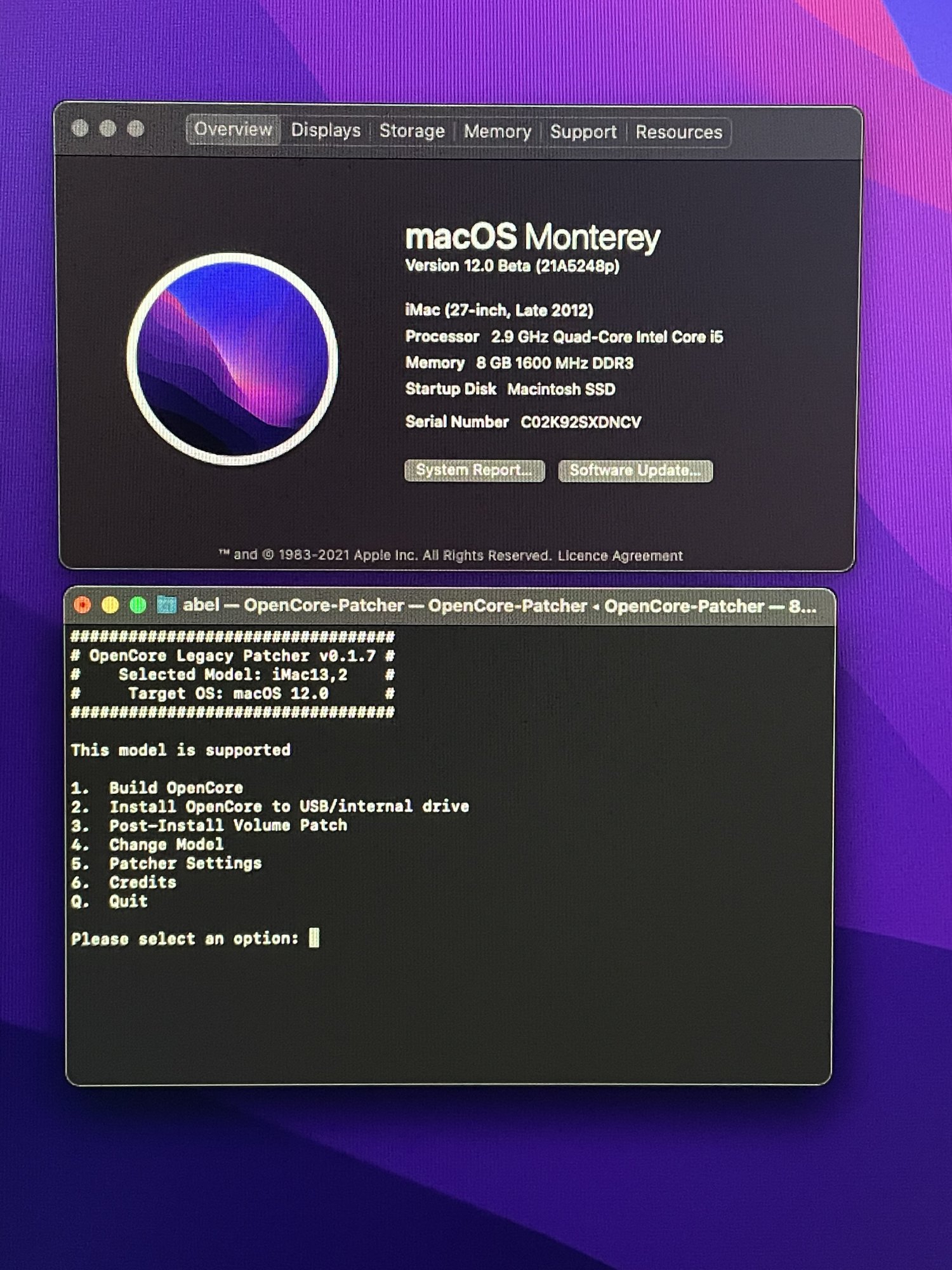 now I needed the OpenCore Legacy Patcher to inject the rest without errors