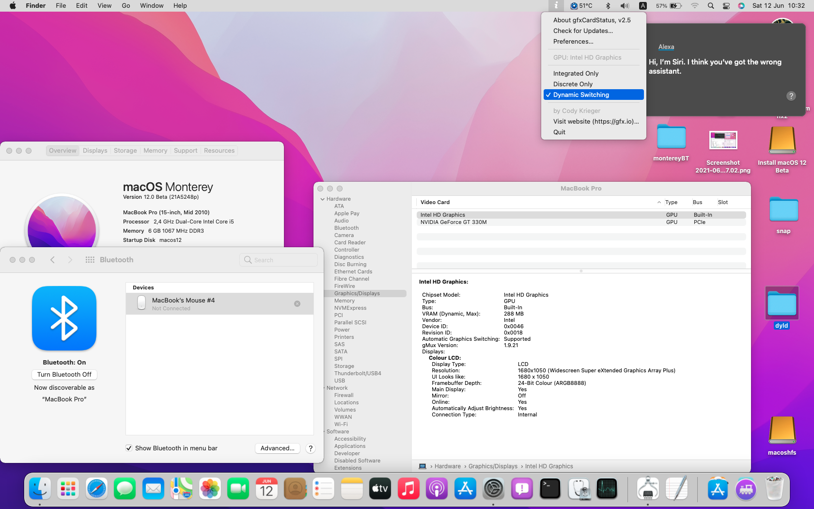 MBP5,2 has dGPU, in use should be the Nvidia Geforce 9600M GT.