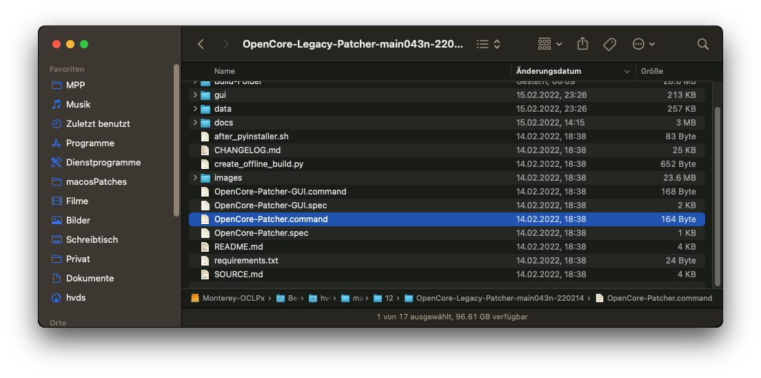 The net result including the changed frameworks is captured in a zip file, too big to be uploaded here, but found in the Dropbox: https://www.dropbox.com/s/kv4hjj3fie8qhx7/OpenCore-Legacy-Patcher-main043n-220214.zip?dl=0