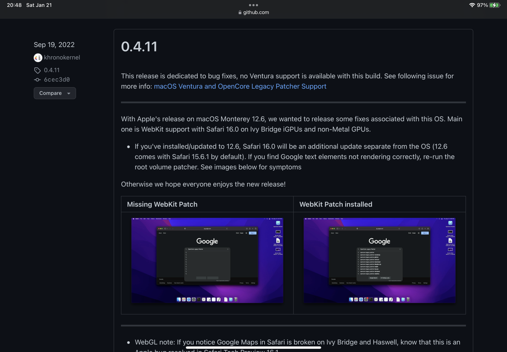 edit: The crash appears to be related to the Nvidia driver. If there's a way to disable GPU acceleration in Safari like in other browsers, that'd probably fix it but also impact performance massively.
