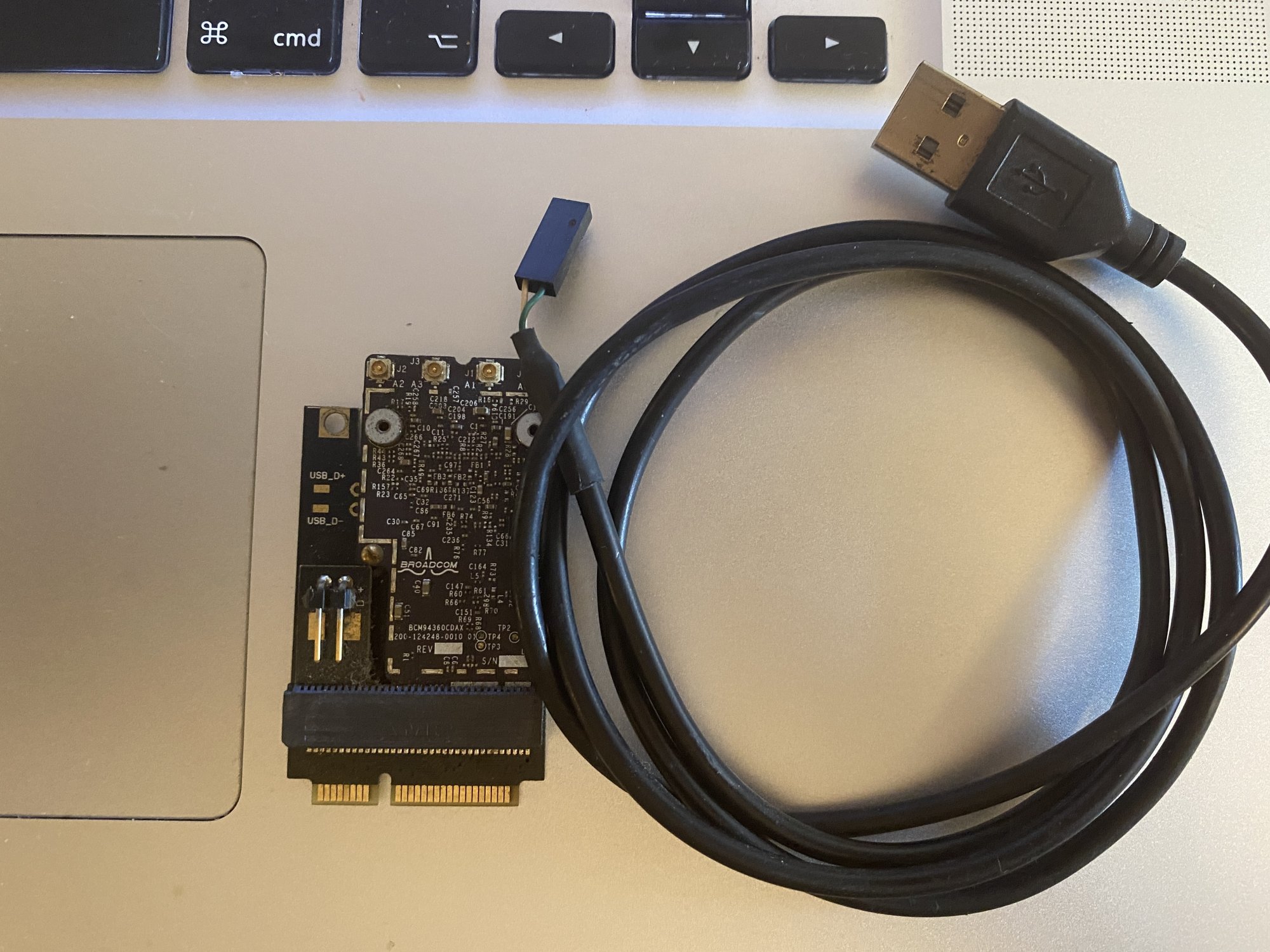 B. Route the Apple mPCI Wi-Fi USB connections to my PCIe USB C 3.1 gen 2 card (if USB header method doesn’t pan out), OR