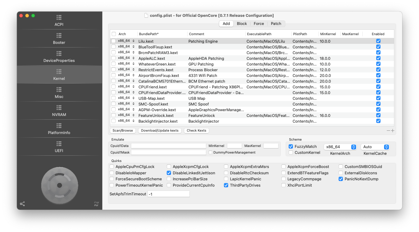 I would like to Thank developers whose work made all the iterations of the patcher software possible. See bottom of the linked page for list of some of the contributors (and links to nightly OCLP releases) at: "https://github.com/dortania/OpenCore-Legacy-Patcher". There is also a list of past and current contributors (for different versions of OS X) on the first page of Big Sur (… on unsupported macs…) thread, under ‘Other patcher versions … “