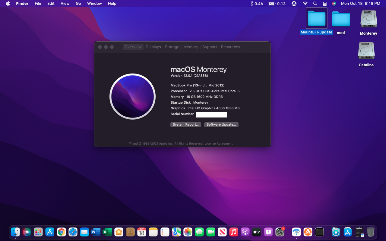 Hi guys, just finished installing on my MBP 9,2 mid 2012 non-retina the new macOS Monterey 12.0.1 using OCLP 0.2.5 from OTA and besides getting stuck, after numerous reboots, at apple logo half way for a long time, forcing me to do a hard reboot, after which all went ok (two more reboots and a smooth restart). Installed the HD4000 patch and all working perfect! Smooth and fast! Thanks everyone for the support. By the way, proud to say that I have placed my order of the new MacBook Pro, 14", with M1Max, 32 Cores, 64 GB and 1TB SSD in silver! It says it will be delivered in about a week. Can't wait!