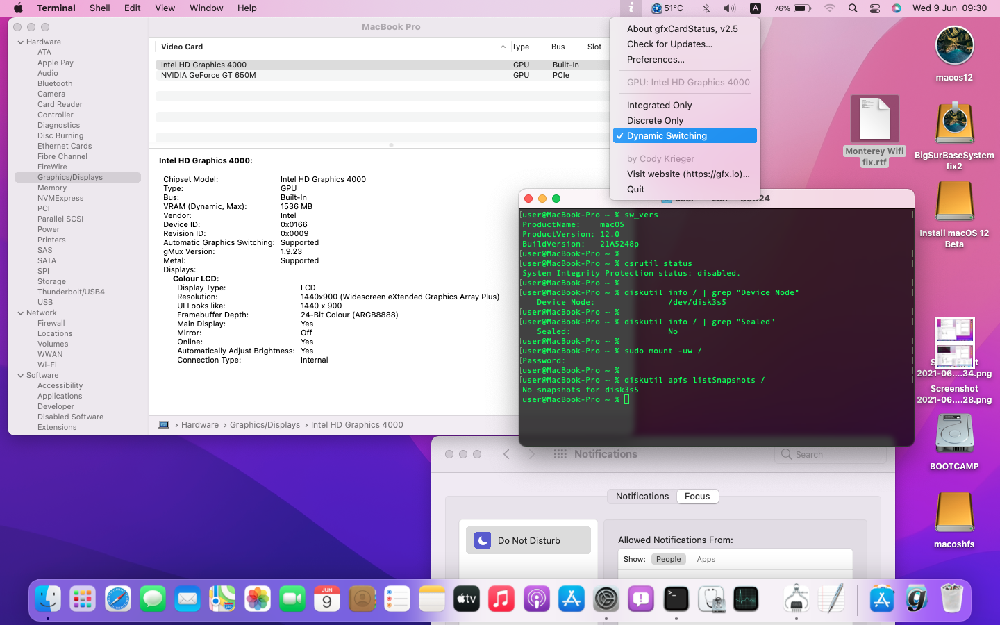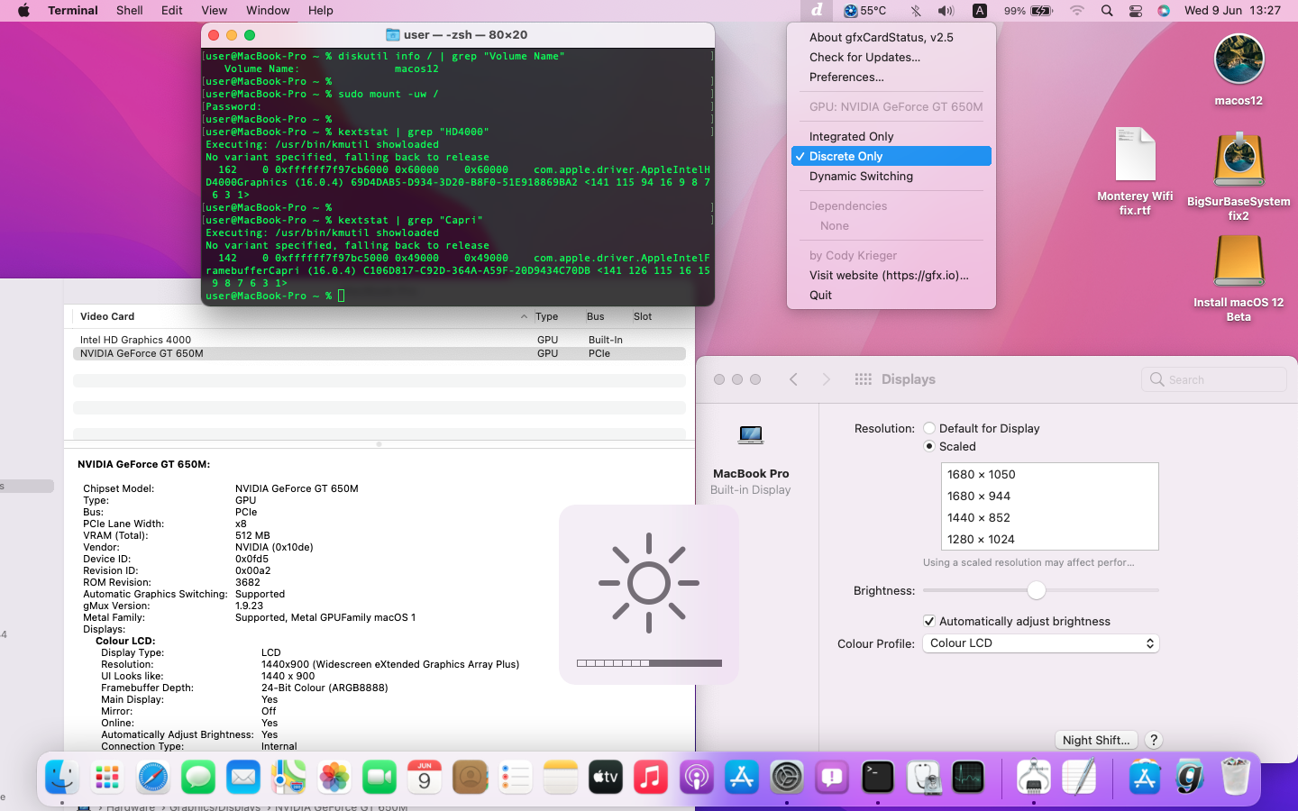 On dualGPUs IntelHD4000 IGPU Nvidia Kepler dGPU the Big Sur AppleIntelGraphicsHD4000* kext and its AppleIntelFramebufferCapri provide the Brightness control, GPU power management and switching, Ethernet also works without kext patching.