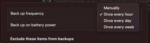 Time Machine now seems to allow to change the backup frequency? Was it there before on Monterey? I can't remember.