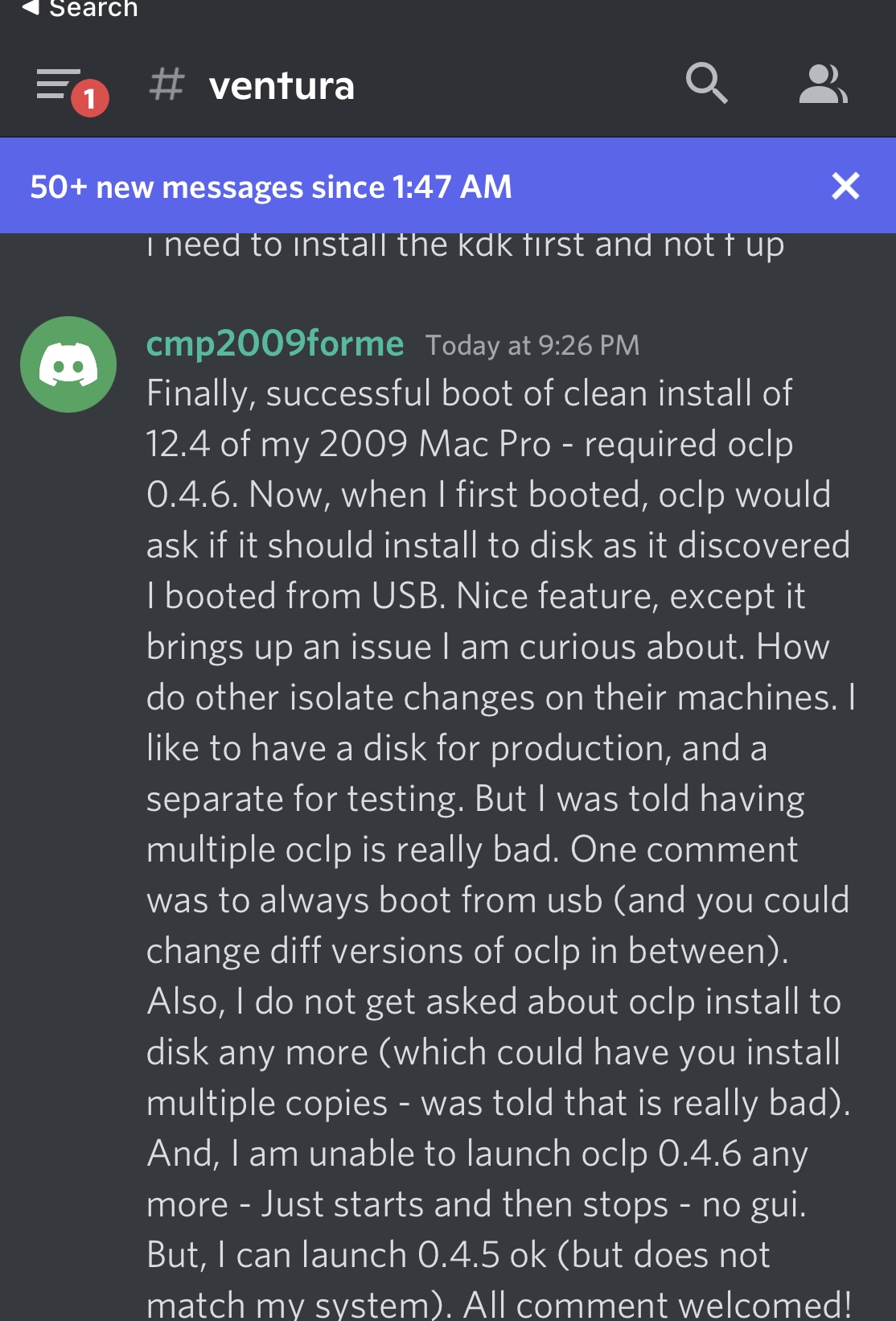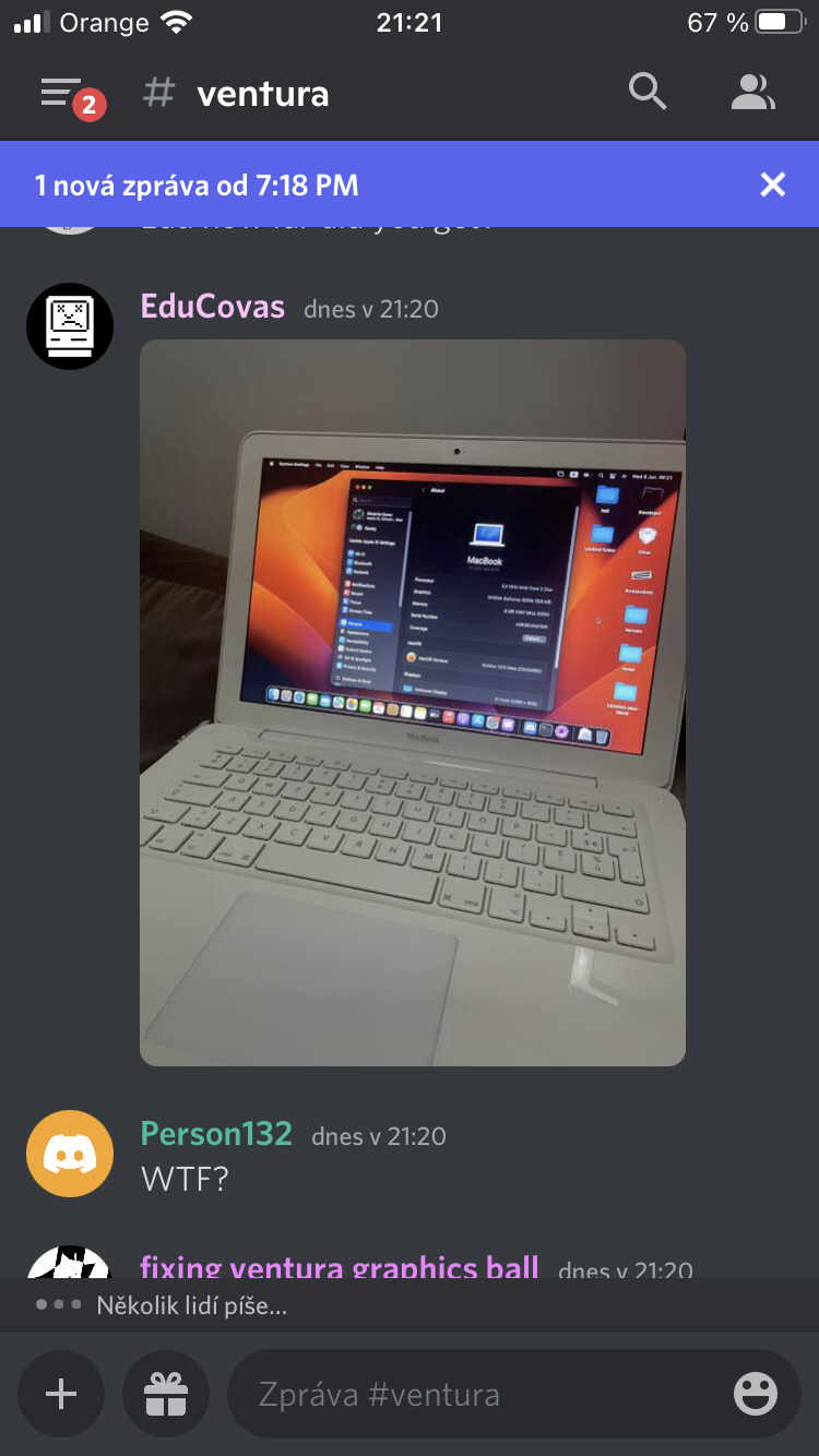It's honestly incredible to follow the Discord server and see how quickly progress is being made! At this rate I wouldn't be surprised if Ventura will be working as well as Monterey by the time it releases!Oh yes, White Penryn Macbook, dammit that’s fast!(Don’t throw your cMPs3.1 away yet.) Arrandale and Sandy Bridge left.
