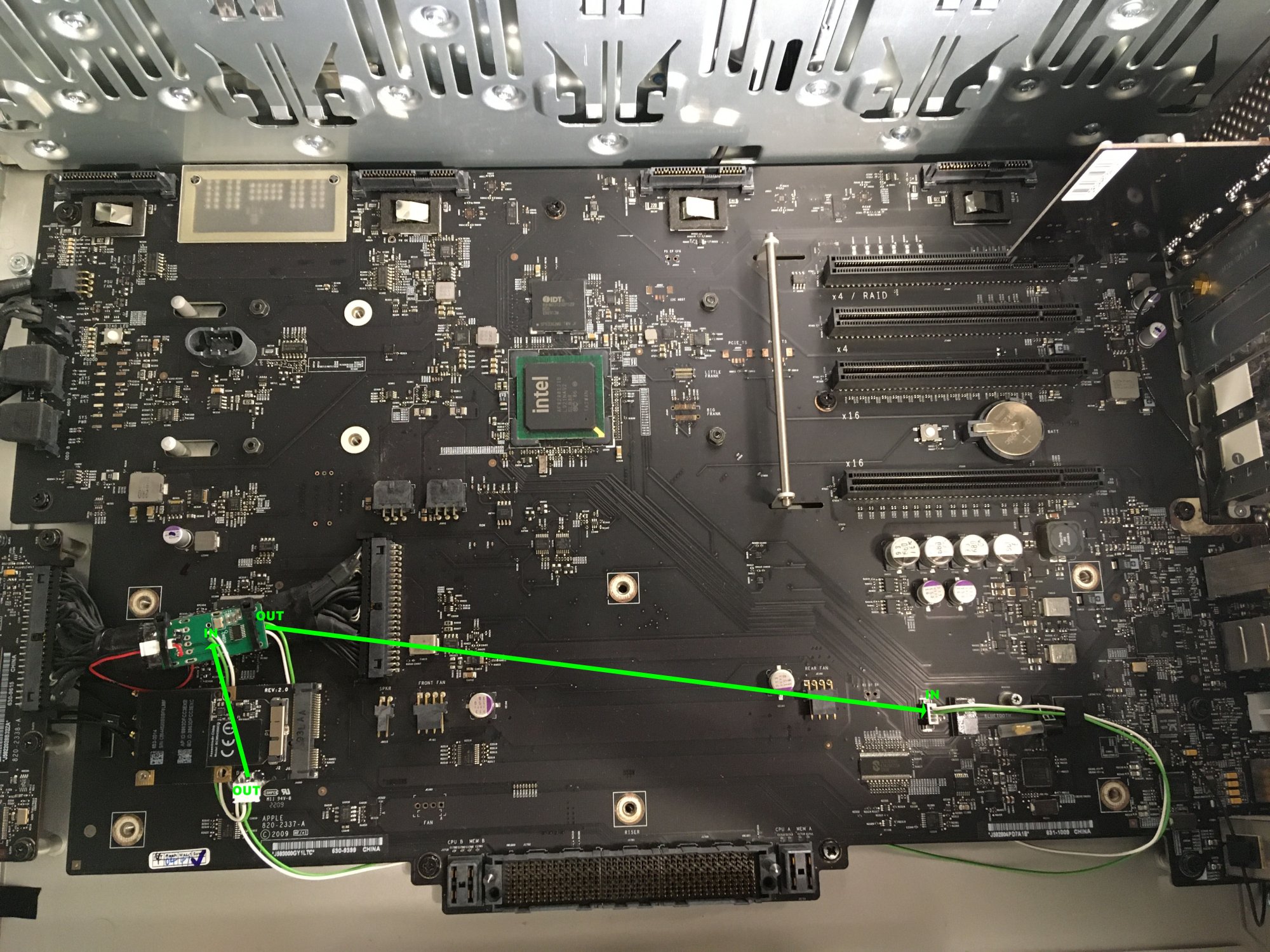 as I said in my previous message, I powered it with +5V by soldering 2 wires (+5V —> red wire and GND —> black wire) under one of the 2 USB ports on the cMP front panel board.