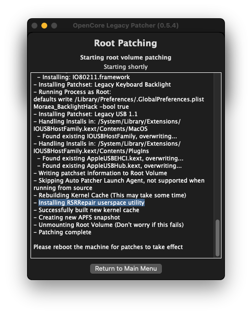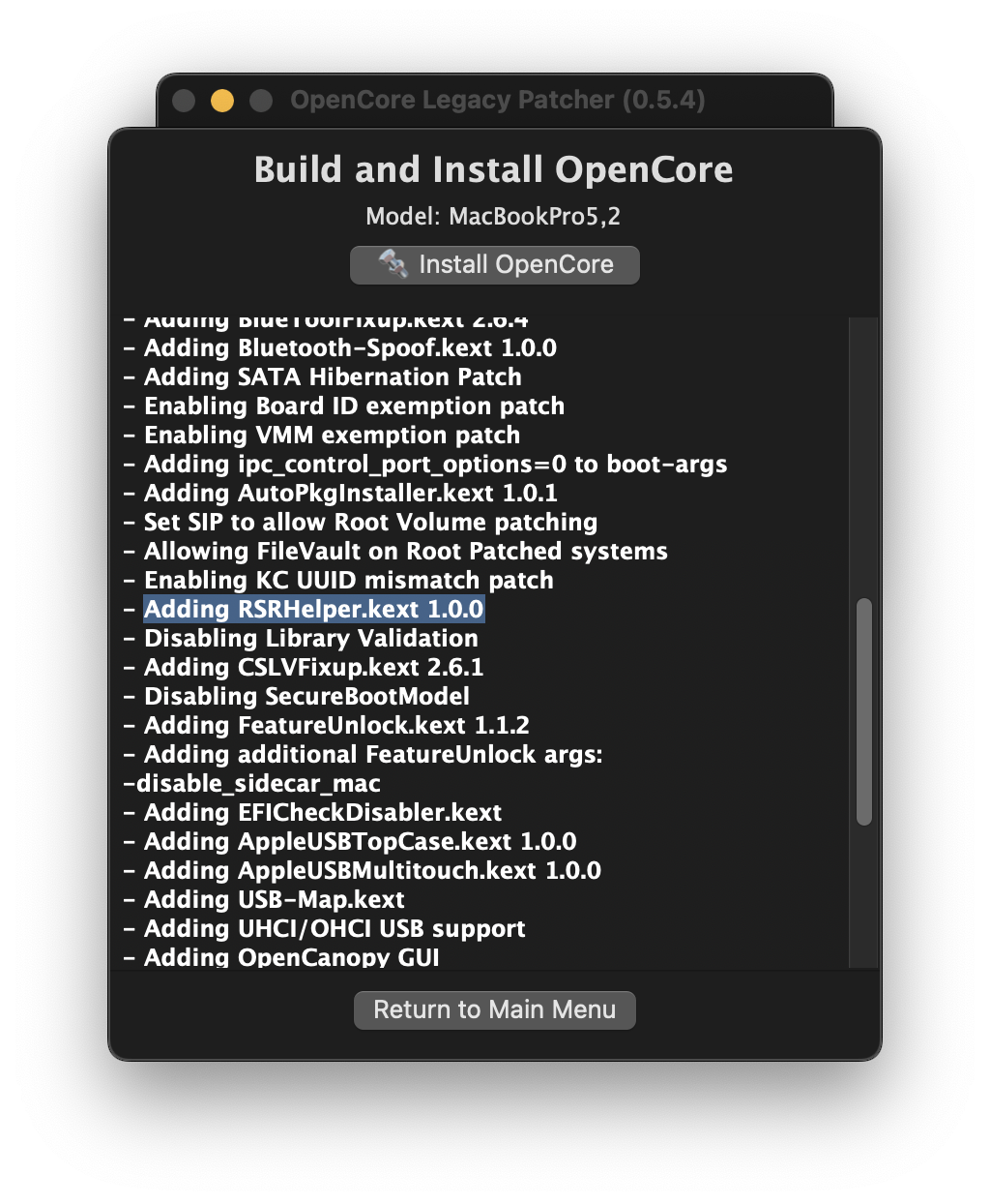 MBP5,2: Updated from 13.2b1 to b2 OTA (11.3 GB), latest OCLP 054n. Running fine.Could be. Not sure, build log for Penryn MBP5,2 says that RSRHelper is added.