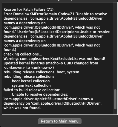 I have same issue on Mac mini Late 2012 , macOS 13.2 installer with OCLP 0.6.1 on separate partition from Catalina via the new USB3 Kingston , any idea ?Clean or conventional installation of macOS 13.2 with OCLP 0.6.1 via USB3 card reader on a native USB 2 port or a card reader in my display (actually a USB 3 hub ...) doesn't work here. With about remaining 12 minutes of the installation procedure this error suddenly appears: