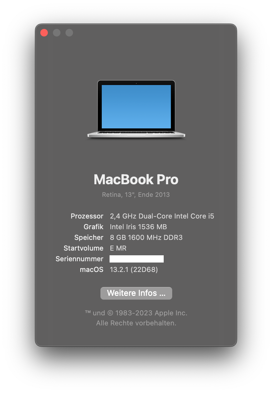 Also MBP11,1 now on 13.2.1, on external SSD.