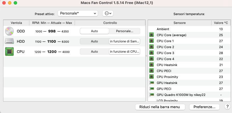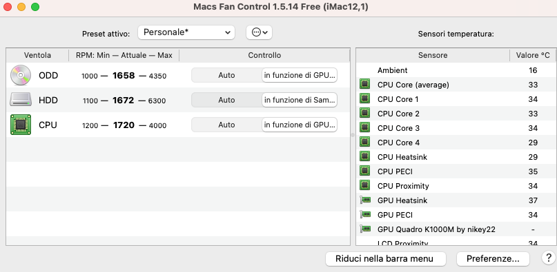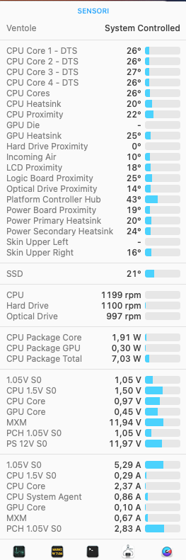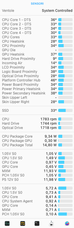 well about the first part of your observation, it's a configuration that I did, perhaps not fully understanding but going to intuition, regarding the cpu fan controlled by macs fans controll, ever since i changed hdd to ssd and i started using macs fans to solve the HDD fan that was spinning at maximum ... your observation in the previous post, also following the recent upgrade of the graphics card with quadro k1000, a light bulb turned on and I changed the configuration assigning the fan ODD and CPU running "GPU Heatsink temperature" between 34° and 42° (no longer having the GPU Die sensor)... about the skin sensor upper left I don't know, I noticed it too, maybe the technician who replaced my GPU a few months ago didn't connect this sensor or anything else... in any case, with the new macs fan configuration, the situation seems to have improved a little, perhaps, because the fans spin at around 1700, all with some he variation for the hard drive one... any further suggestions? Thank you