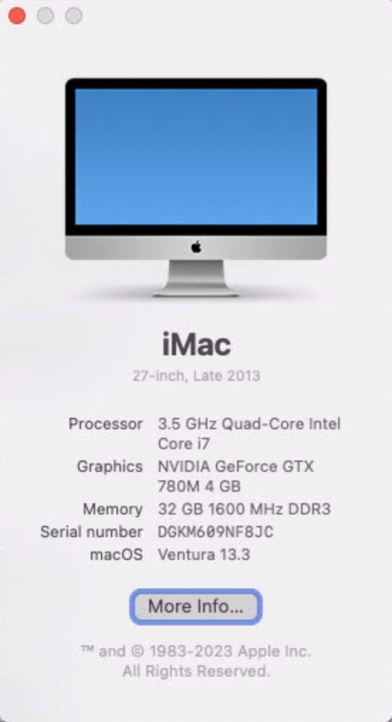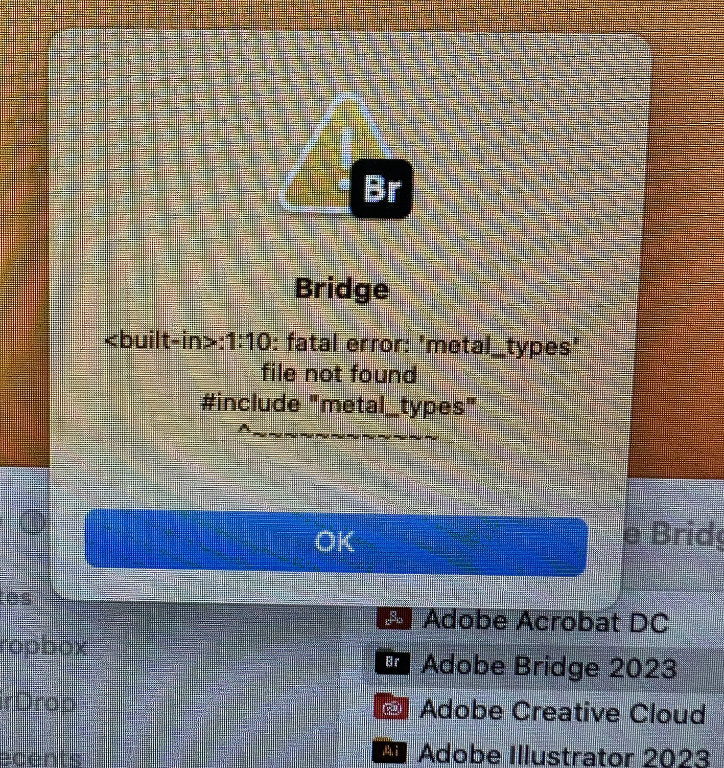 Clear nstalled on iMac 27 late 2013 (1 gb graphic card) with disk formatting ventura 13.3 via open core patcher 0.6.3. Everything works well, except does not display icons in the system settings, zoom can not get access sound and camera and adobe bridge of any version does not start (the licensed adobe package other graphic programs work fine, photoshop, indesign illustrator... Usb installer was created on a computer of the same line but with a different configuration. This is bridge error. Attach iMac profile on which the installation disk was created, the same problem with zoom but no settings icons render issue. Any ideas?