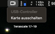 Thanks hvds for tipping me to that. I put my NanoTECH USB 3.0 card into the ExpressCard34 slot and from now it only appears, when I put the card in. When I eject the card the menu item is gone.I've seen this symbol in the menu bar before on my MBP5,2.