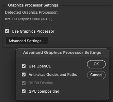 The latest Photoshop is suddenly giving the graphics error we have seen before. I do not see any available Graphics settings options.