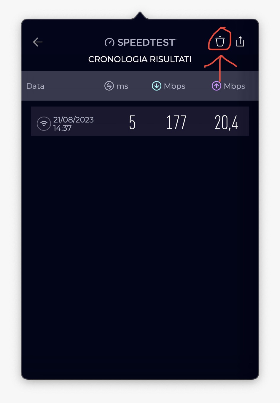 … More in particular, when I click the trash can button (red arrow and circle in the screenshot), Speedtest always quits unexpectedly, without any message (when booted regularly; while when in safe boot, everything works as it should). The settings are in