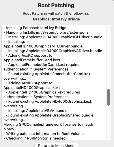 Ventura continued to load on to the mini. OCLP popped up and said I needed root patching which I started to do but then said it could not do it.
