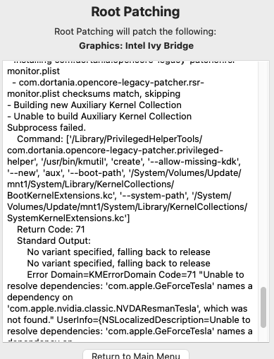 Using OCLP I downloaded latest version of Ventura (13.7.3) and again tried root patching but was again unsuccessful.
